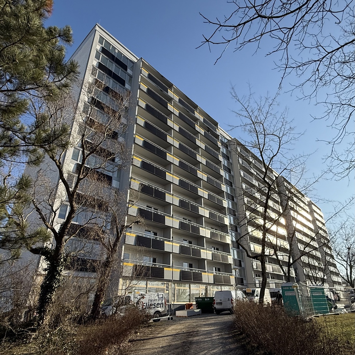 Anbau von Aufzügen und Strangsanierung mit Schaffung barrierearmer Wohnungen